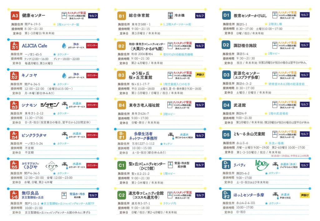 多摩市内の公共施設に加え、オフィスやカフェなどの飲食店、ショップ(物販)で給水にご協力頂ける店舗にお声がけして、ご登録を頂きました。