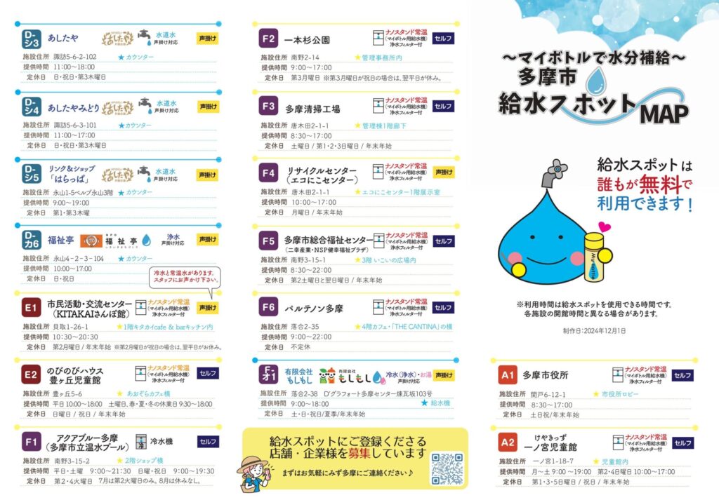 <一般用>多摩市全域の給水スポットマップカラー版をみず多摩が作成しました!!(2024/12/1)